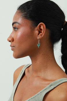 Sold out - Turquoise Cactus Drop Earrings - Bohemian Desert Style ๐ต